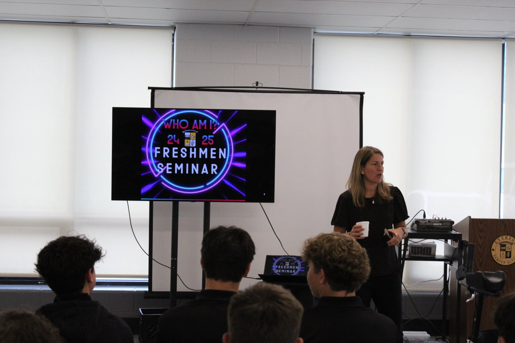 As the school year begins, freshman had the opportunity to participate in a formation seminar. The theme of the seminar was “Who am I?”, focusing on the fresh start that freshman years provides them. The students were invited to reflect on who they want to be as individuals and recognize their God-given gifts.