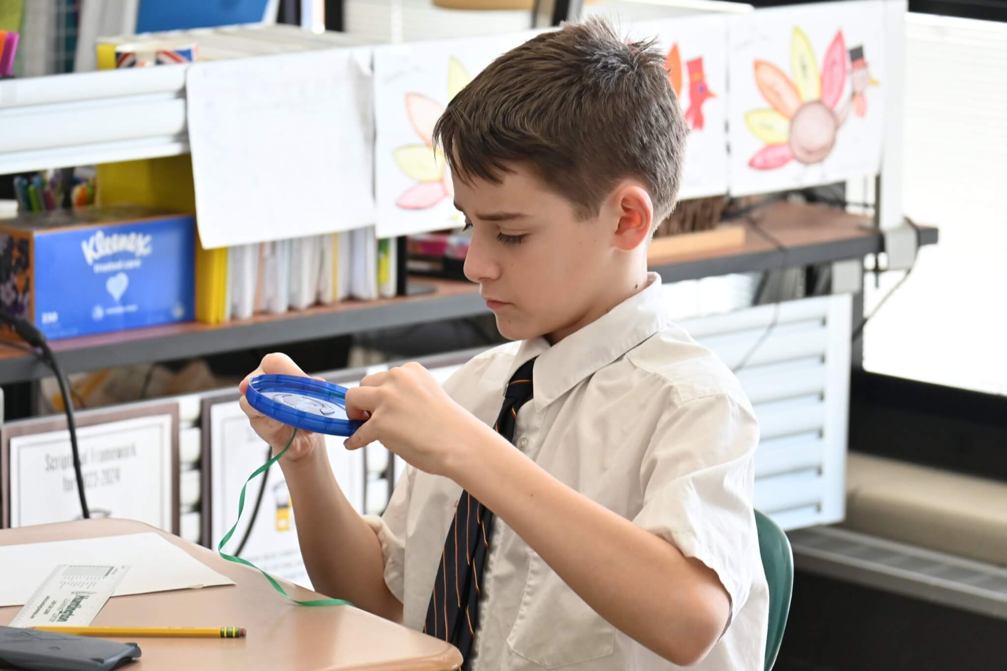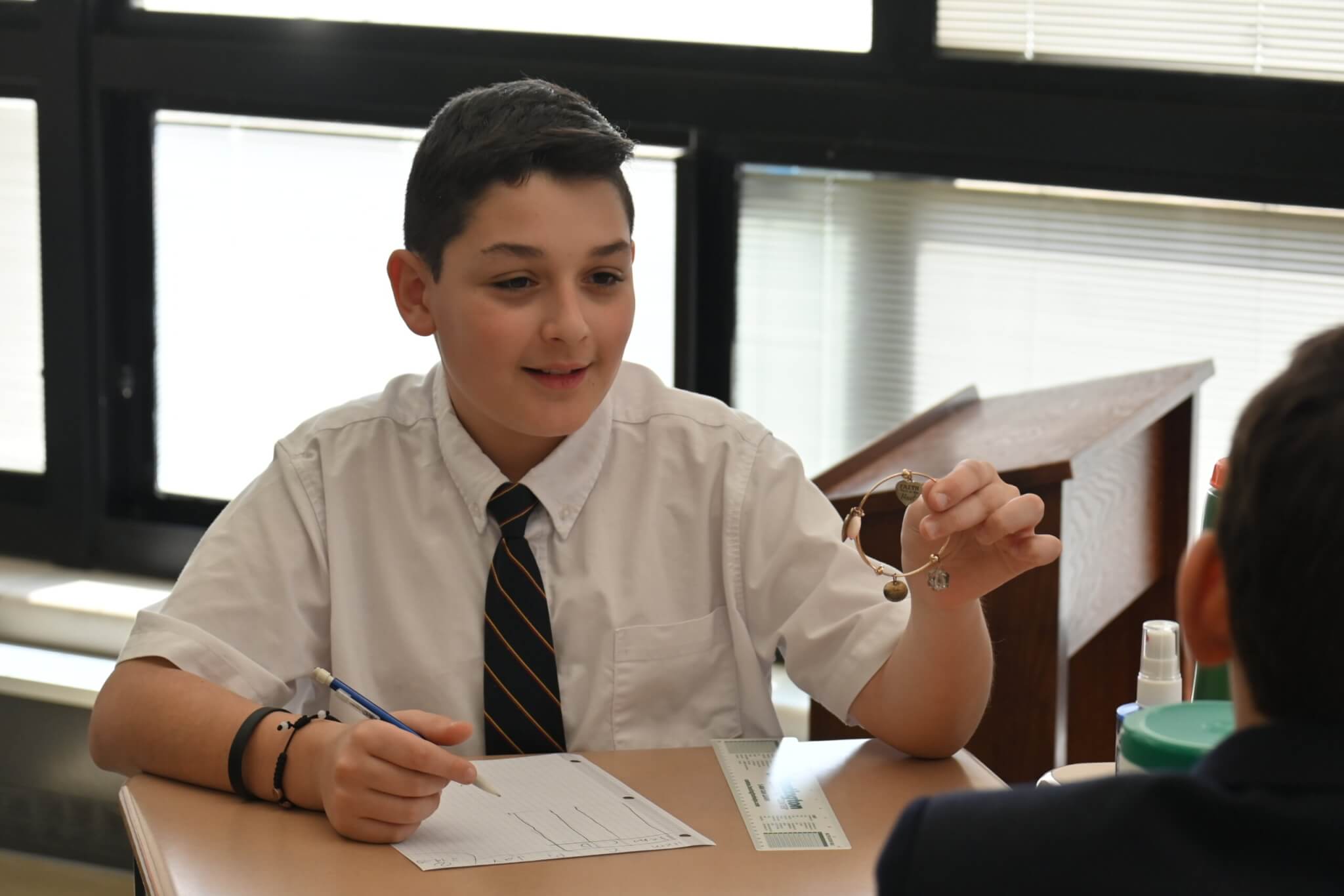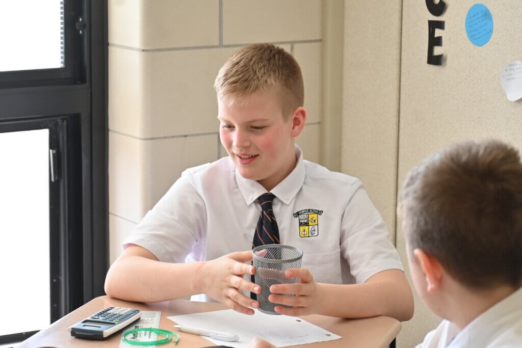 Pi Day, celebrated on March 14, fell on a Friday. So, while there was no actual pie for middle school students on a Friday in Lent, they did enjoy fun activities during math class for the occasion. Groups worked to calculate measurements of various circular objects provided by Mrs. Diffenderfer.