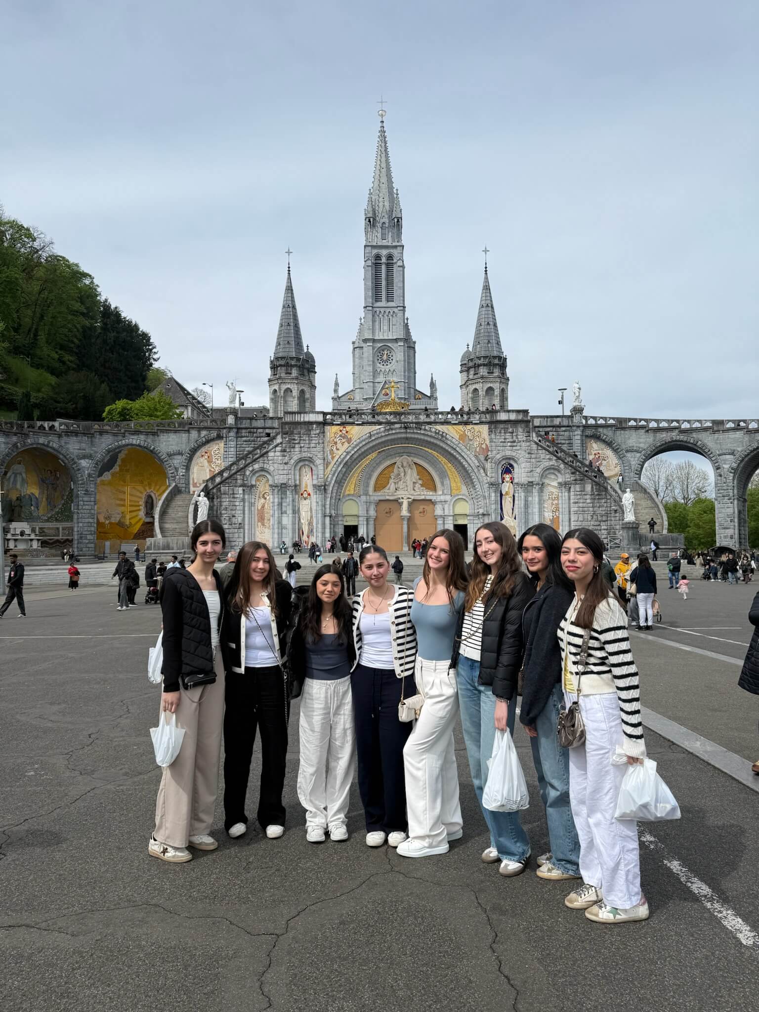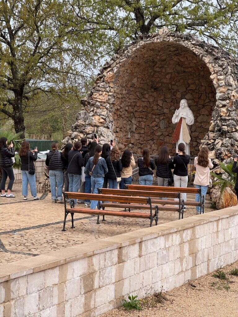 The girls also embarked on a Marian pilgrimage through Europe, visiting three of the most beloved Marian sites in the world: Medjugorje, Fátima in Lisbon, and Lourdes. Each destination offered them a deep spiritual encounter, moments of peace, prayer, and reflection. In Medjugorje, they visited the Christ statue, climbed Apparition Hill, and experienced the powerful presence of the Blessed Mother. One of the most special moments was when the girls had the opportunity to make a personal promise of chastity before the Virgin, receiving a blessed ring as a lifelong reminder of their commitment. In Lourdes, they participated in the washing ritual with the holy water, offering their intentions for healing and opening their hearts to grace. Dany Gómez shared, “My favorite part of the trip was when they washed our hands and face with the holy water from Lourdes. They asked us to think about what we were offering that moment for, whether it was to heal something in ourselves or to offer it for someone else’s healing. It was such a beautiful and intimate moment with the Virgin. I truly felt her close during whole pilgrimage.” This pilgrimage was a journey filled with faith, grace, and spiritual growth, one the girls will carry in their hearts forever.