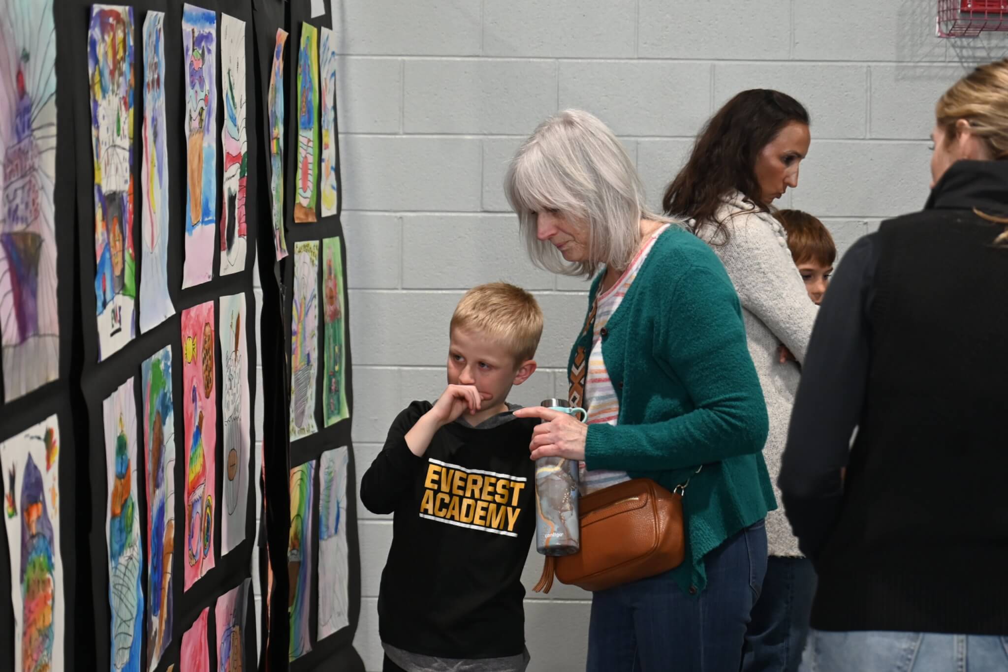 The annual fine arts night celebrates Everest students’ talents in the visual and performing arts. From an exceptional art exhibit to performances by 3rd-12th grade students in band and choir, it is a beautiful evening. For the second year in a row, the evening ended with a conclusion of all our students presenting the song Praise together. St. John Paul II shared in his 1999 Letter to Artists, “Beauty is a key to the mystery and a call to transcendence. It is an invitation to savour life and to dream of the future. That is why the beauty of created things can never fully satisfy. It stirs that hidden nostalgia for God…” Thank you, Mountaineers, for stirring that nostalgia for God!
