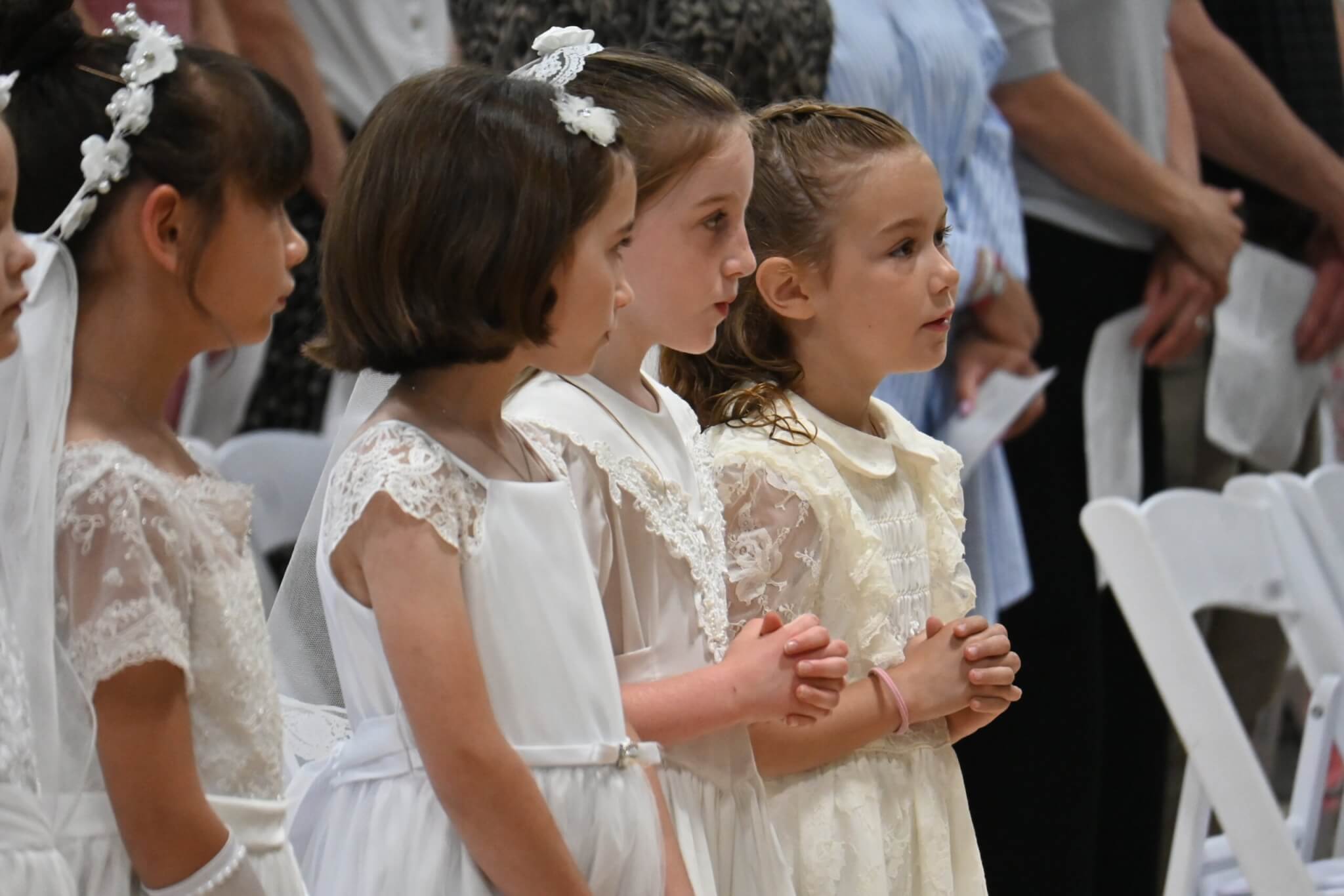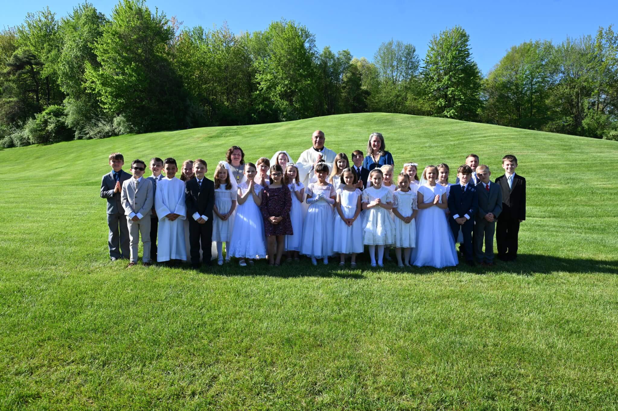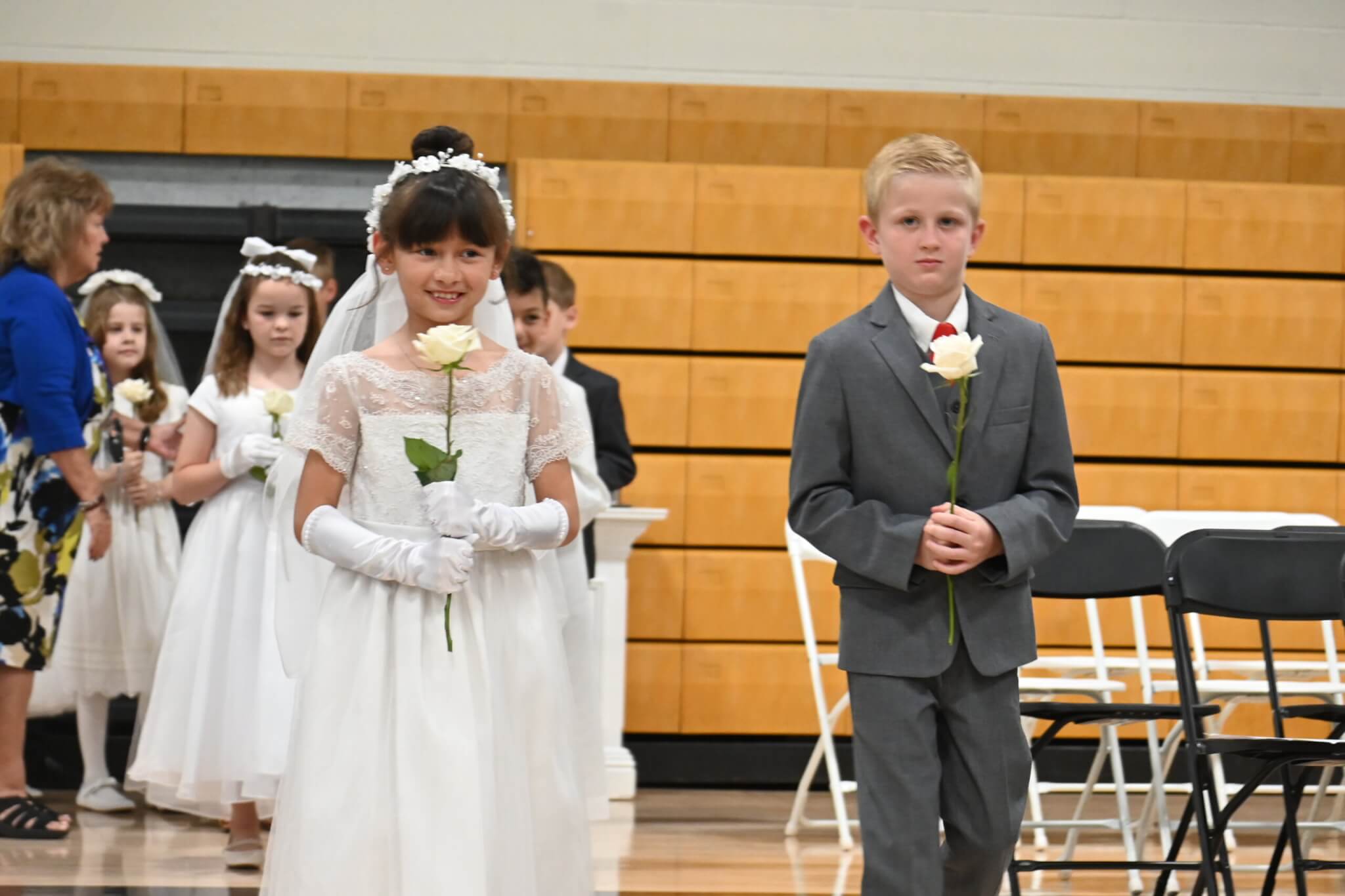 While every Everest student participates in sacramental preparation through the parish where he or she will receive a sacrament, religion classes focus on sacramental preparation in second grade. Following the students’ First Communions at their parishes, they are celebrated in a special way at school. Wearing their First Communion garb, they are honored at Mass. It is always a special moment when they sing Jesus, My Friend after communion.