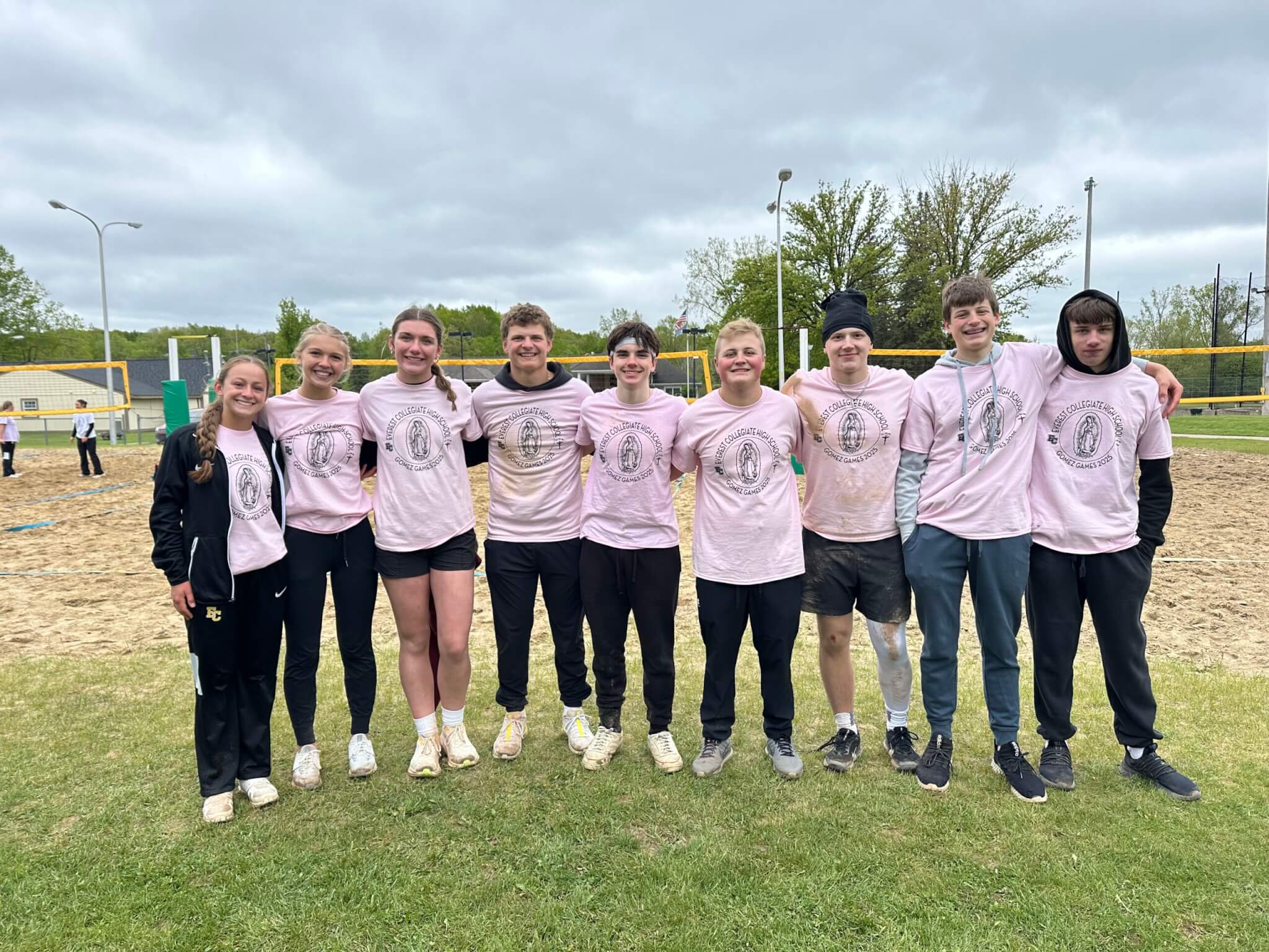 It may have been cold and muddy at Clintonwood Park, but that didn’t stop EC students from having fun at the annual Gomez Games. The day of competition in kickball and volleyball was punctuated by time praying the rosary and roasting s’mores. The pink team ruled the day this year, earning a spirit day on the final day of school!
