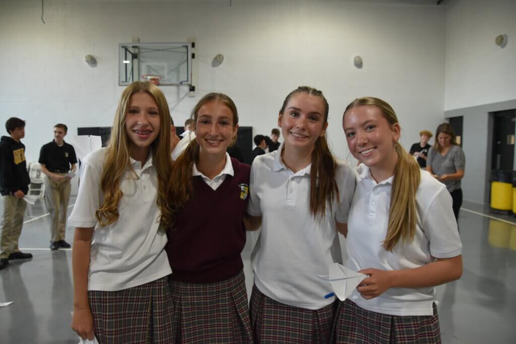 The freshmen recently had their first class seminar of their high school careers. The morning focused around the theme of “New Year, New You.” Mrs. Van Wagoner welcomed the group and encouraged the freshmen to take this opportunity to start high school with a fresh perspective of responsibility and independence. The Regnum Christi missionaries lead an ice breaker that helped the students get to know their classmates better. Mr. Reichert introduced seniors Dominic Walker and Isabella Ponce and invited them to share their advice on how to make the most of their high school experience by taking their academics seriously, staying close to Christ, and appreciating their classmates and teachers. After that, Mrs. Ciaramella provided an insightful presentation to the freshmen on the neuroplasticity of their brain and the importance of thinking positively and creating habits that will support their growth. The seminar concluded in the chapel with Fr. Thomas where he instructed the freshmen to set goals for high school and to write a letter to themselves explaining their aspirations for the next four years. They will receive this letter at their senior seminar. Overall, it was a productive morning with the EC Class of 2029.