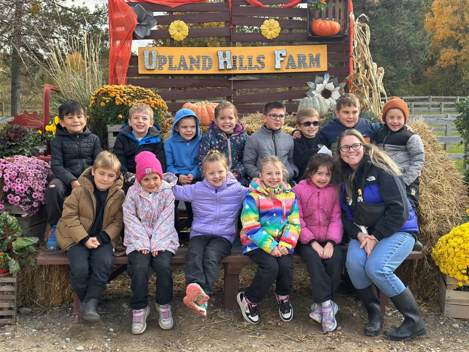 Everest’s kindergarten classes enjoyed a fall field trip to Upland Hills Farm. The group started the day off with feeding the ducks. The ducks sure knew to follow the bucket of food! Next, the students went on a hayride which led them to walk on a trail through the woods. They played eye spy looking for different nature items. After the hayride, the students played on the playground and then attended a farm show. During the show, they learned about cows, chickens, goats, geese, and sheep. They even made butter! When the show ended, the classes enjoyed their lunch! They ended the field trip by picking out their own pumpkins to bring home! The class extends a big thank you to the chaperones!