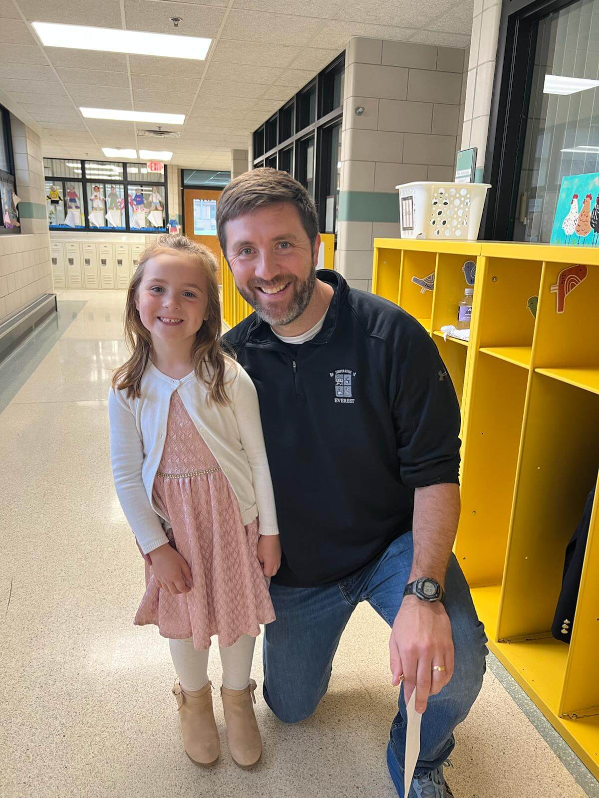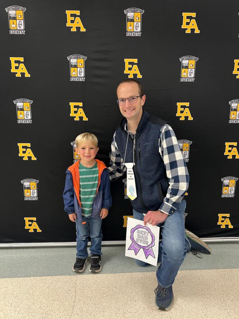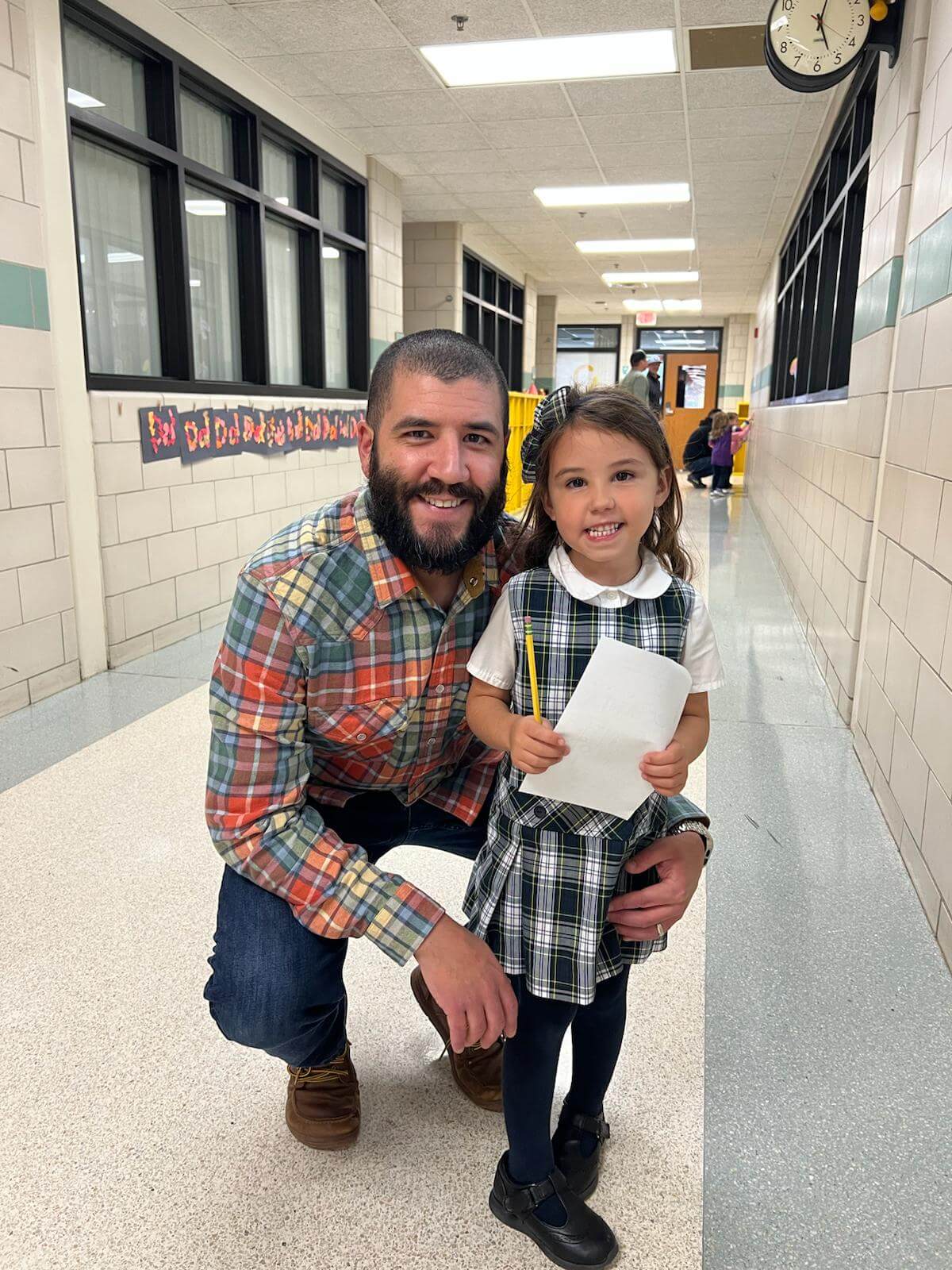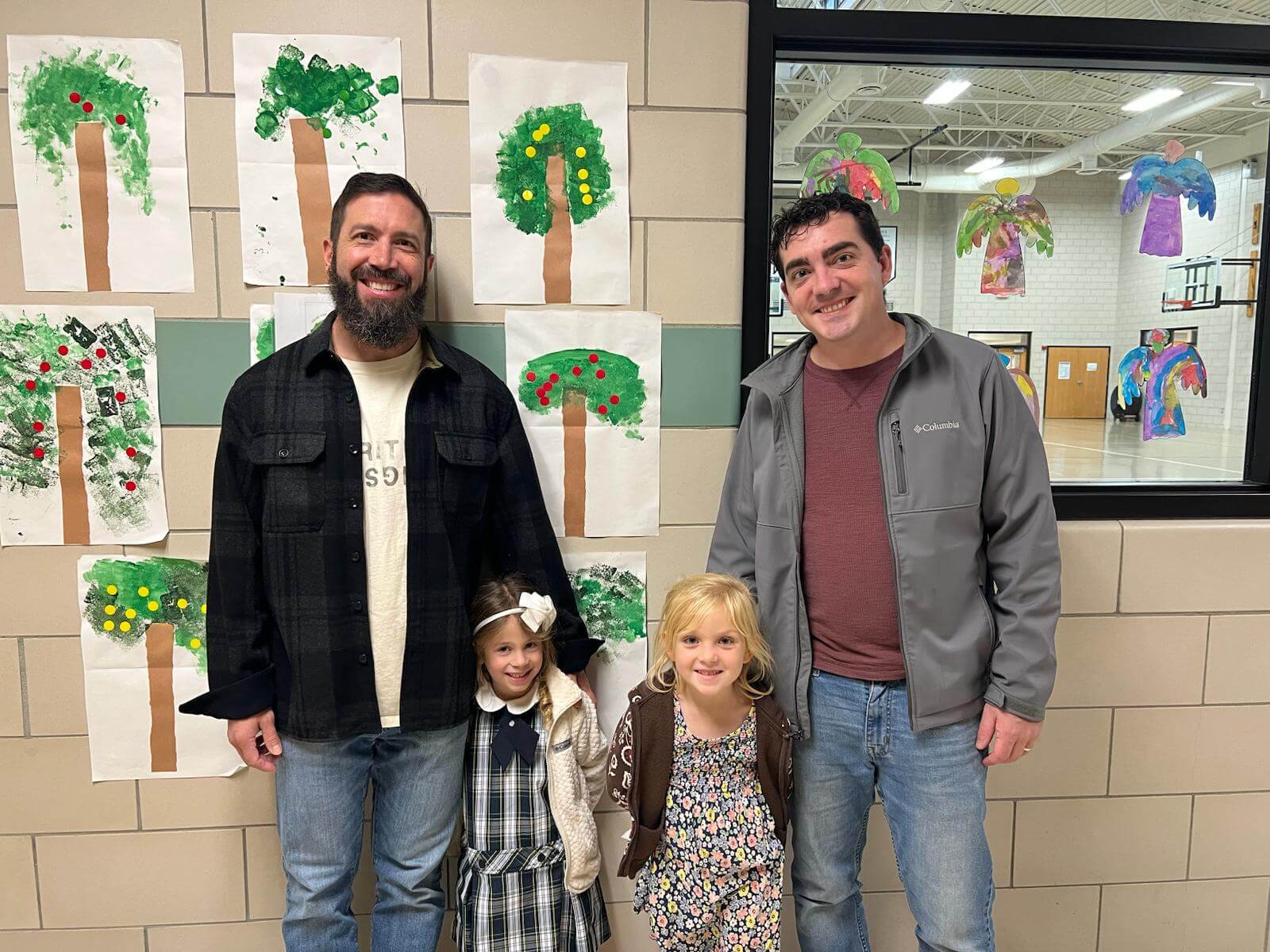 Everest’s preschool and junior kindergarten students were excited to come back to school with their dads in the evening for a father and child activity night. Since All Saints’ Day was around the corner, the first activity was and ABC Saints Scavenger Hunt. Students searched the hallways with their dads to find each letter of the alphabet and then read about the saint whose name began with that letter. After reading about the saint, there was also a suggestion of an exercise together because becoming a saint requires “exercises” to build good habits and virtues. Maybe some of the youngest students got inspiration from the saints they learned about for their saint costumes.