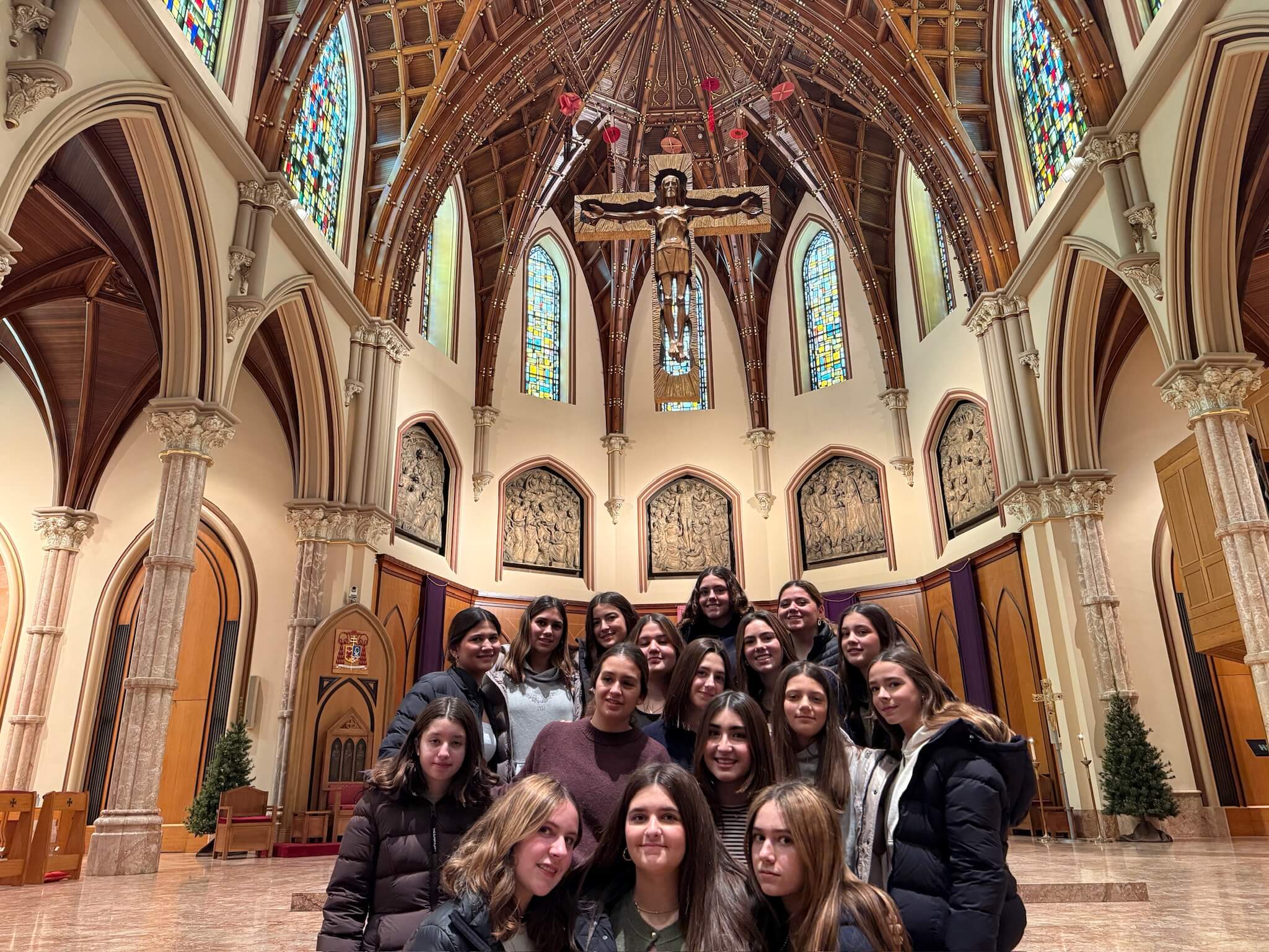 From the moment they arrived, Chicago offered something new around every corner. Students wandered along the Riverwalk, took in the towering architecture of downtown, and experienced the city from above on the famous Centennial Wheel. One of the most special moments of the trip was attending Mass together at Holy Name Cathedral, a beautiful opportunity for the students to pause, pray, and give thanks during this Thanksgiving weekend.