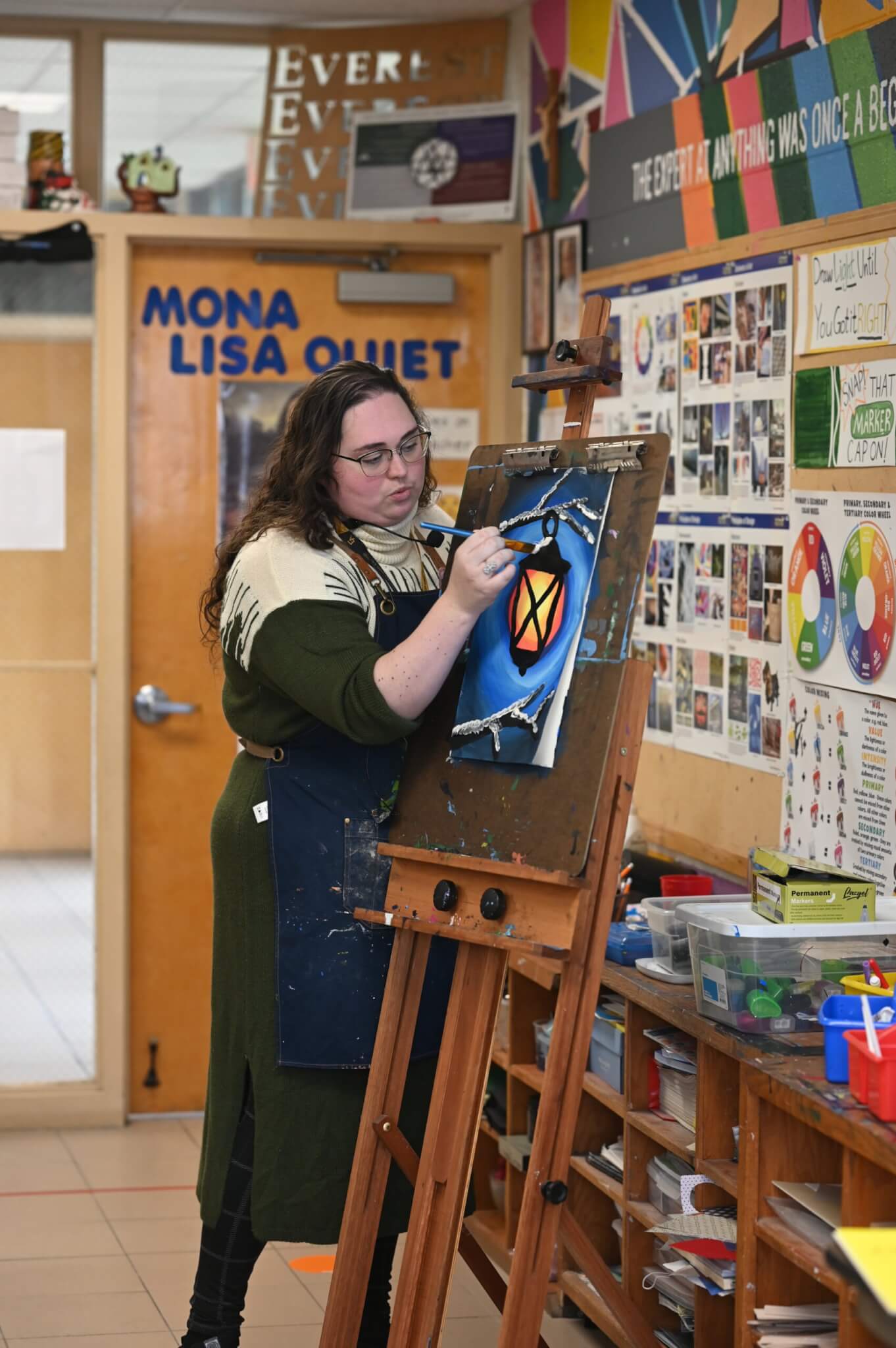 Everest fine arts students have been hard at work all semester to prepare for the annual Christmas program. Visual arts students work from throughout the semester will be displayed during the evening. Recently, fourth graders experimented with Bob Ross style painting, using “wet-on-wet” technique to create beautiful paintings of lanterns as demonstrated by Miss Gordon. Stop by the art show to see the work of our talented students.