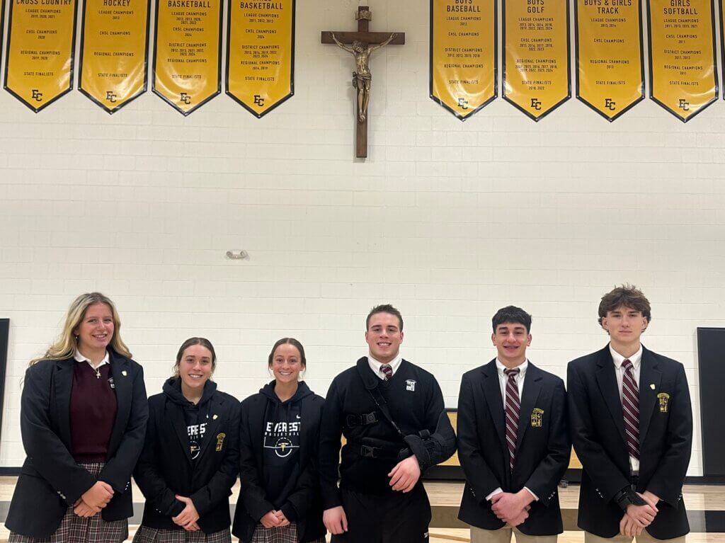 Recently, six Everest Collegiate High School student-athletes joined fellow Catholic League students for the St. Sebastian Day leadership conference. This year’s meeting was held virtually due to forecasted weather conditions on its scheduled date. Upperclassmen from various CHSL schools participated in the event and spent the day reflecting on their roles as team leaders grounded in faith, character, and virtue. The participants began by celebrating Mass and sharing breakfast together before logging to the group session. The conference featured a distinguished lineup of speakers, including a welcome from Mike Evoy, CHSL Interim Director, followed by student leadership training led by Kristin Sheehan, Program Director for Play Like a Champion Today. Additional speakers included Owen Carapellotti of University of Detroit Jesuit, Georgetown University, and Major League Baseball, as well as Molly Campbell, Athletic Director at Marian High School. The participants had the opportunity to share some of their most memorable take aways from the day.