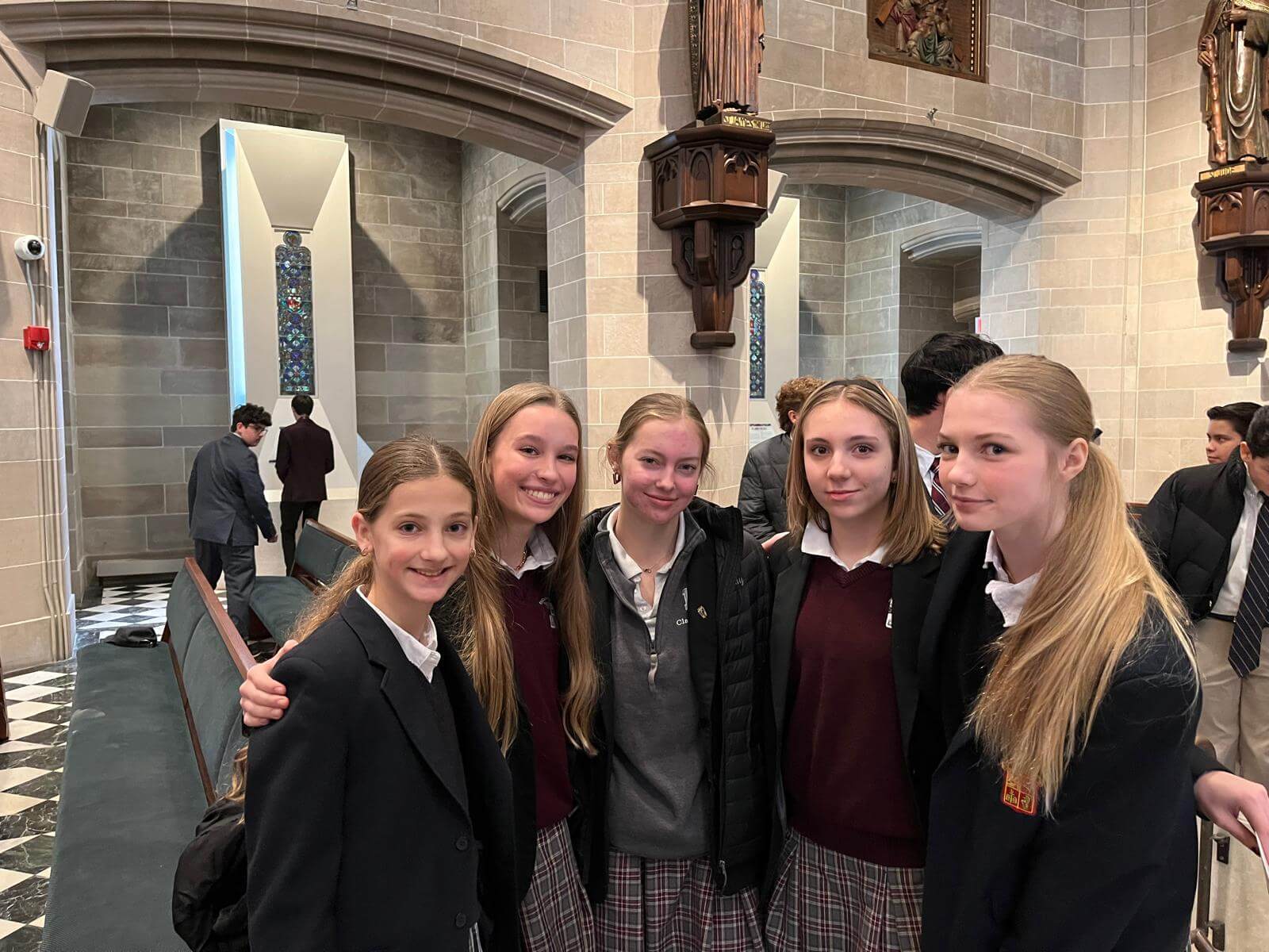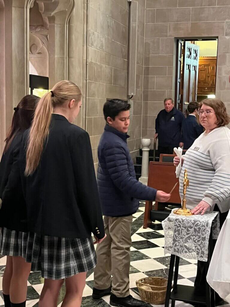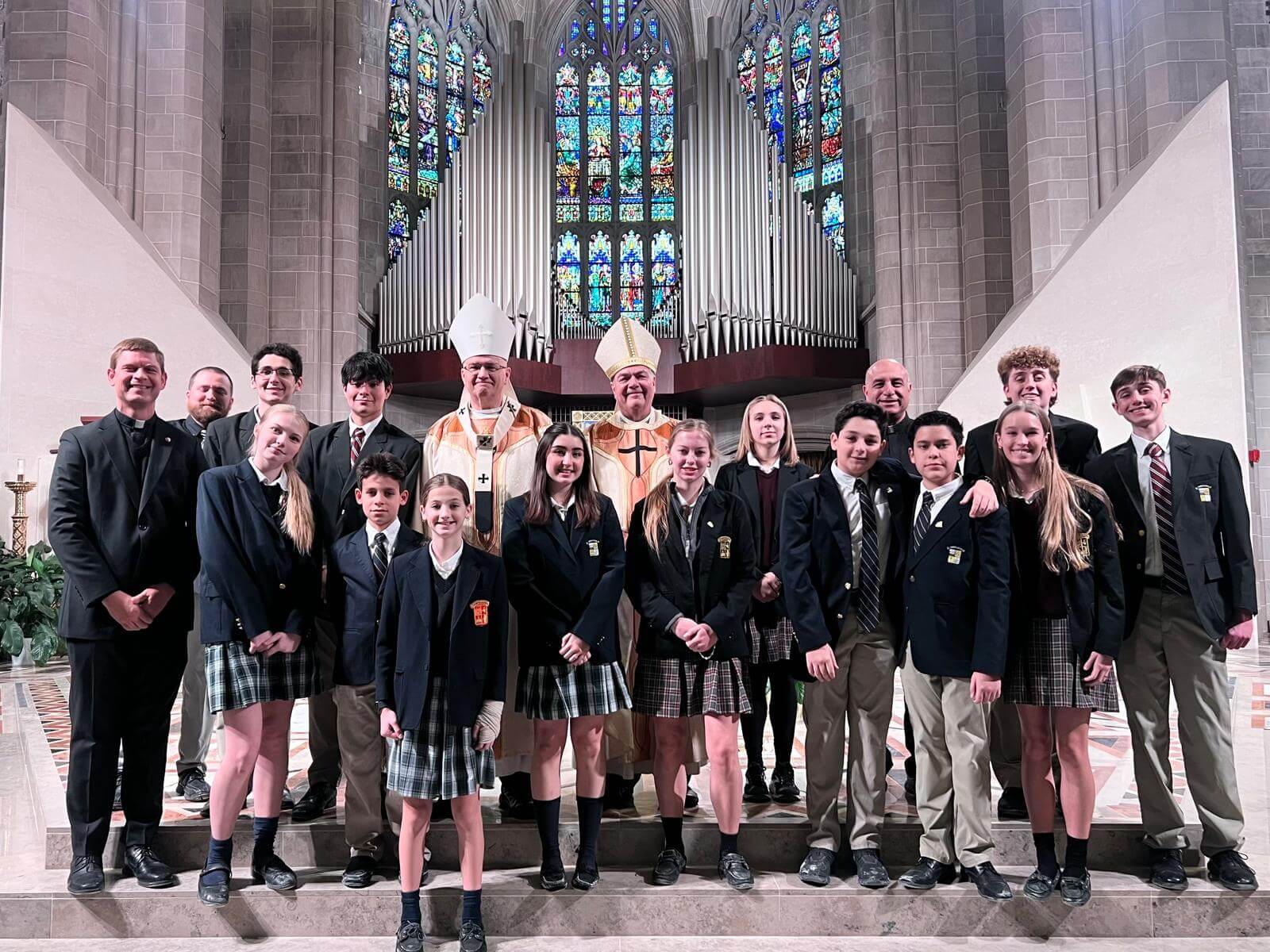 On Thursday, January 29, a group of students went to represent Everest at the Catholic Schools Week Mass in the Blessed Sacrament Cathedral in Detroit. Everest has participated in this Mass with other Catholic schools for a number of years. This was the first Catholic Schools Week Mass for Archbishop Edward Weisenberger since he was appointed as Archbishop of Detroit. He spoke of his own experience growing up at a Catholic school and how it was a huge support for him while his father was away fighting in the Vietnam War. He invited the students to be grateful for their ability to attend a Catholic school.