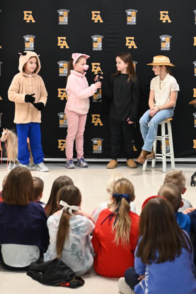 From public speaking to memorization, summarizing, artistic expression and more, the third graders developed many skills during their presentations of Charlotte’s Web to their parents. The students narrated and acted out the story of Charlotte, Wilbur, and their friends. Congratulations, students, on your presentations!