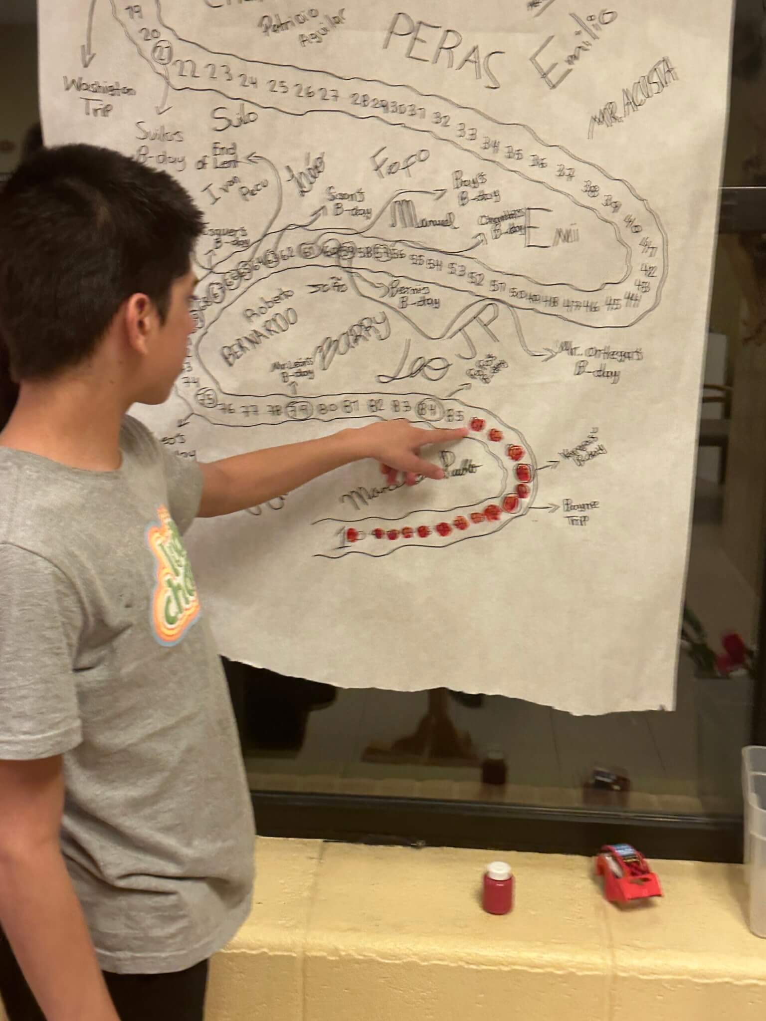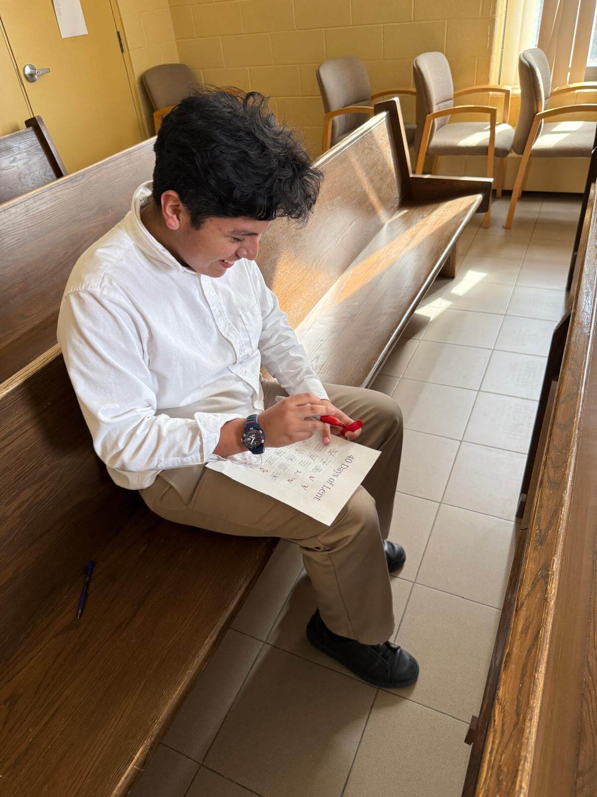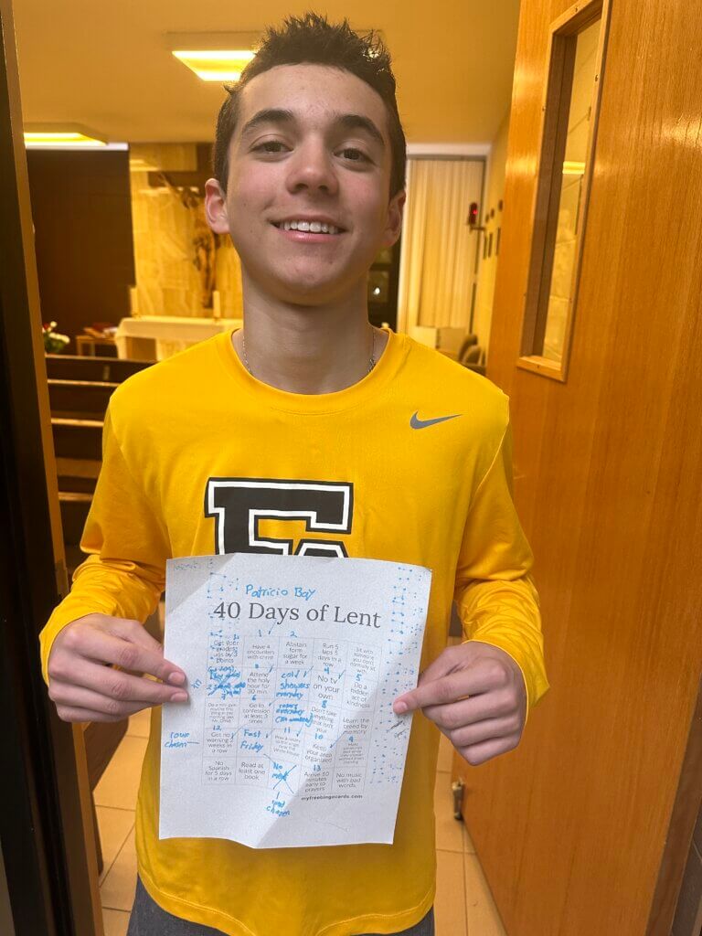 The boys are embracing Lent through specific campaigns including a Lenten bingo card, filled with opportunities to grow in prayer, generosity, and discipline. A 100-day countdown to the end of the year hangs on the wall, and each evening, one student adds a stroke of paint to mark the day’s end. Each mark is a reminder that these days matter, and that how they are lived matters too.