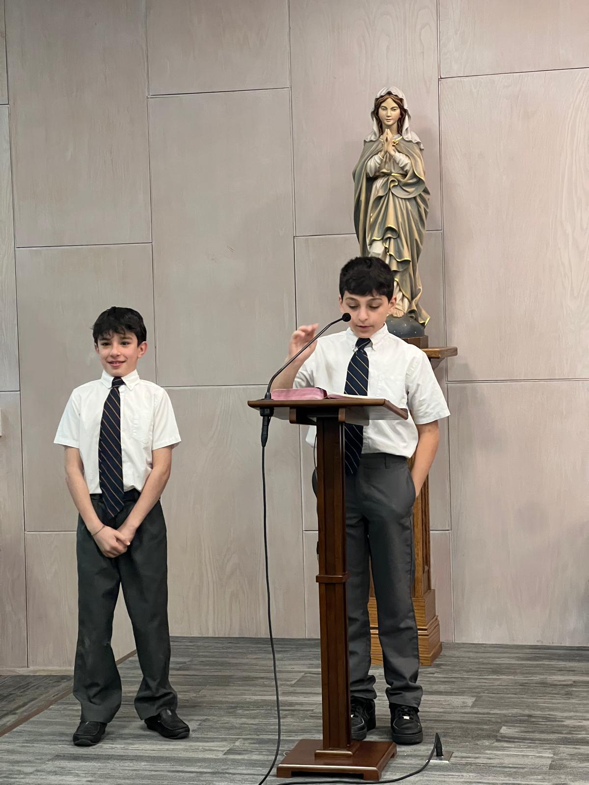 The fifth-grade girls had their mother and daughter retreat on Tuesday, March 10, and the boys had their mother and son retreat the following day. It was special to have the gender-specific formation activities. While the activities for the retreats were fairly similar, the delivery of the activities was tailored toward each gender. The moms appreciated the time for fellowship and formation specifically related to their sons and their daughters. While the moms had their fellowship time, the students continued their retreat. The high school ECYD team leaders for each group came over and ran formative activities. The morning ended with adoration in the chapel.