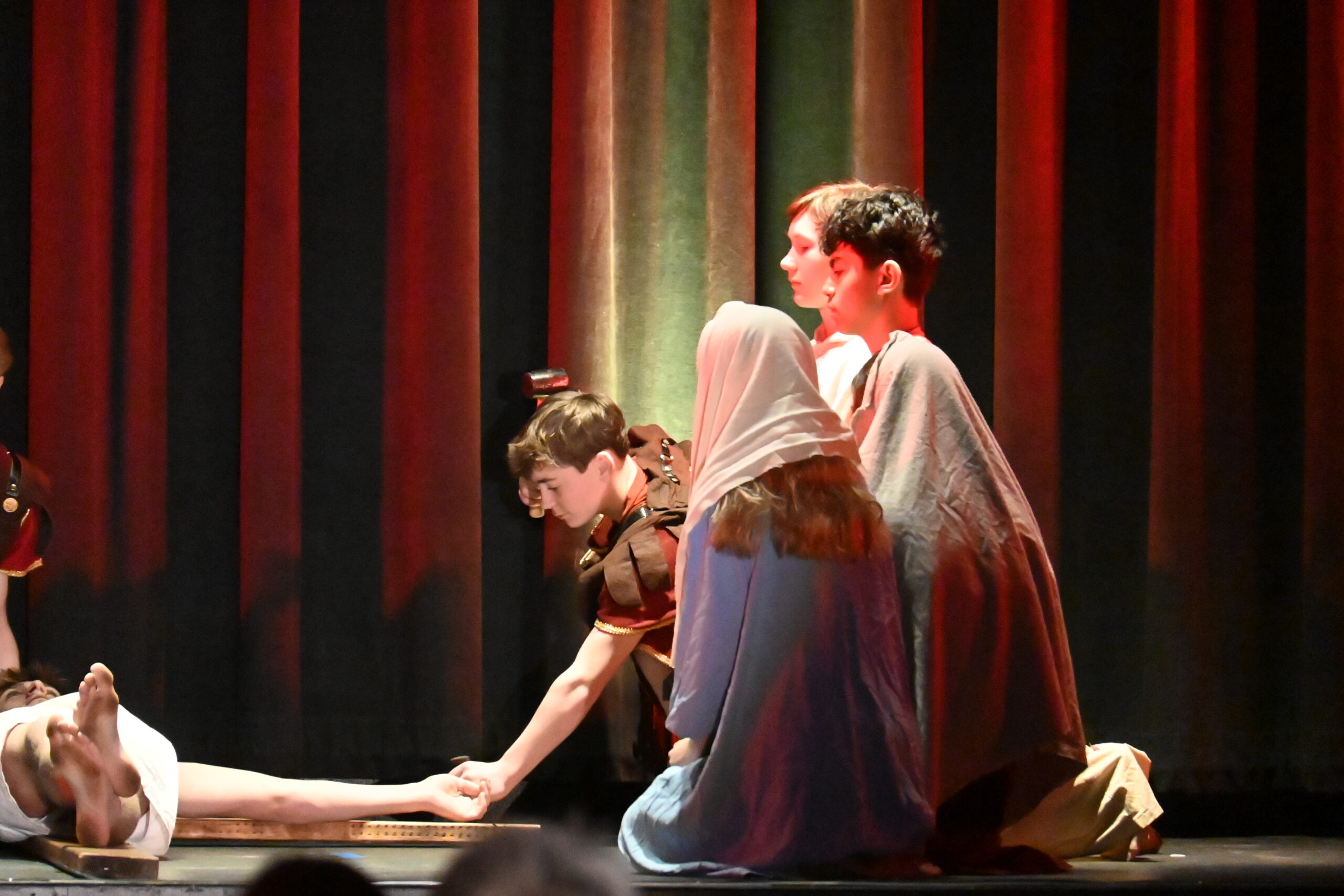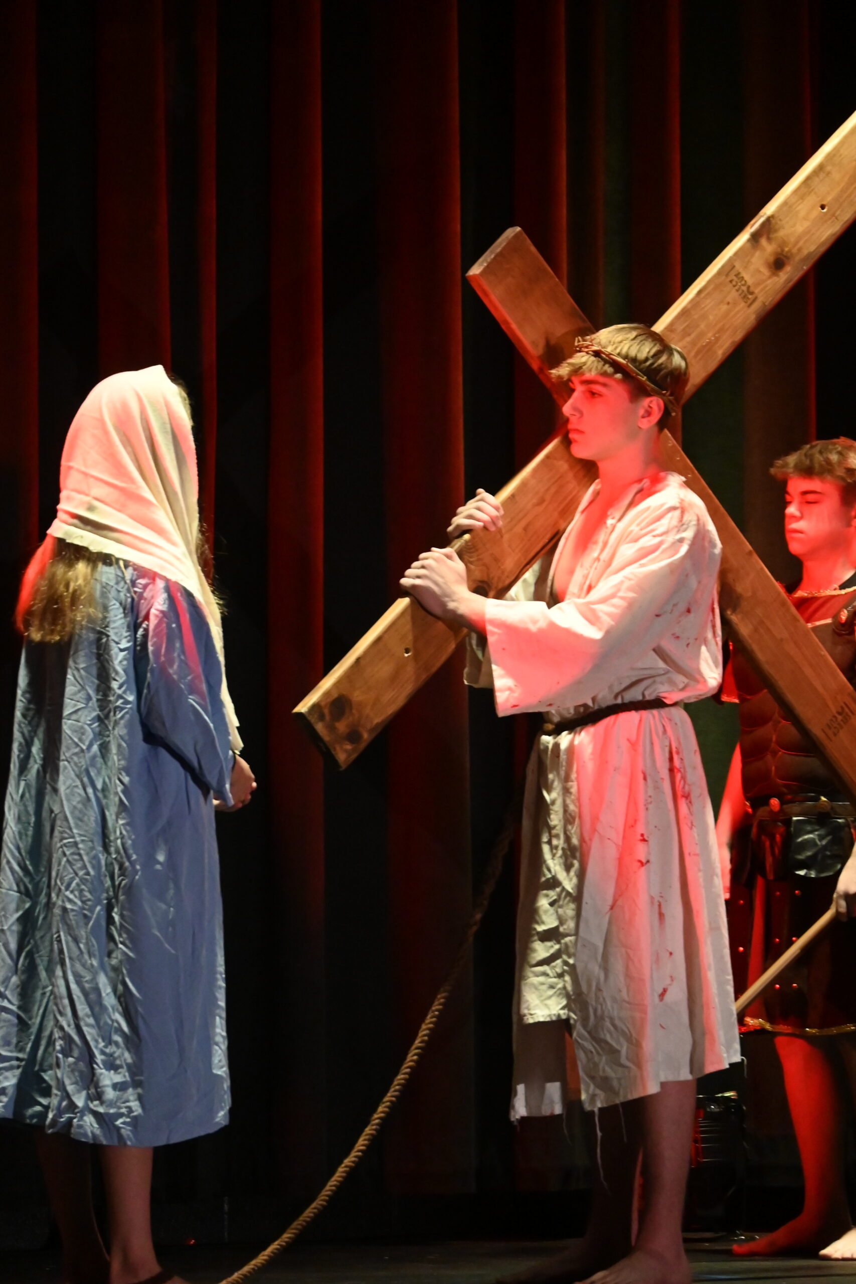 Eighth-grade Everest students present the living stations of the cross each year during Holy Week. The entire student body had the opportunity to attend and participate in prayer. Following the final station, students joined in singing Lord, I Need You. It was a powerful moment of prayer prior to the Sacred Triduum. Have a blessed Easter, Mountaineers!