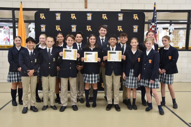 On Friday, February 21, sixteen new members were inducted into Everest Academy’s Our Lady Seat of Wisdom Chapter of the National Junior Honor Society. NJHS