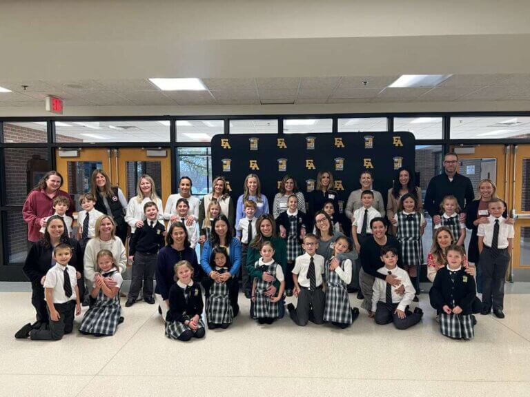 Both second grade classrooms had their mother and child retreat on November 12. They started off the morning with Fr. Christopher in the high school